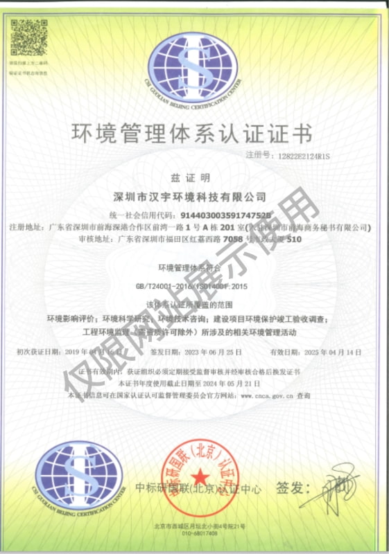 深圳市漢宇環境科技有限公司是一家綜合性生態環境技術服務企業,擁有一支專業從事科研、規劃、環保咨詢、技術開發等方面的高素質人才隊伍,經營范圍涵蓋環境影響評價、環境科研與規劃、企業環保管家服務、政府第三方技術服務、土壤調查與生態修復、固體廢物污染防治研究、新污染物與環境健康研究、智慧環保信息系統開發等。